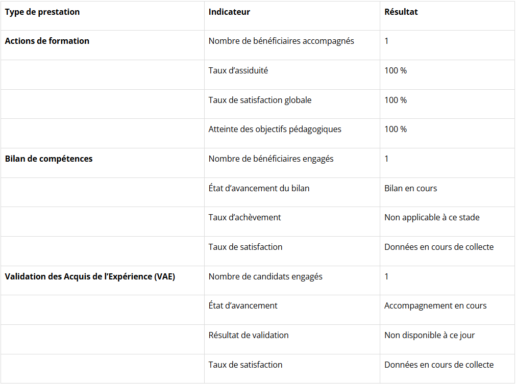 Bilan de compétences | Nombre de bénéficiaires engagés | 1 |